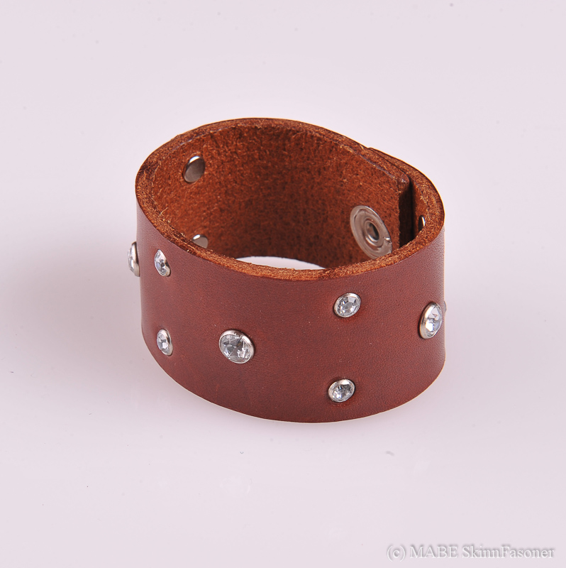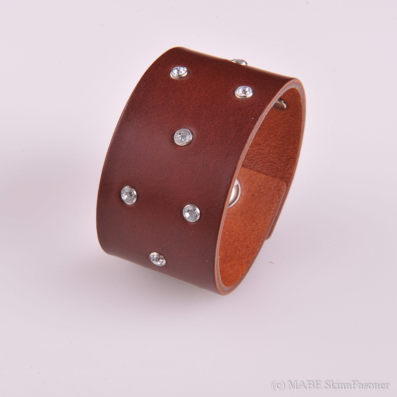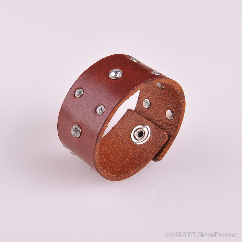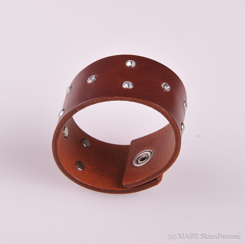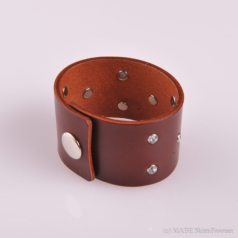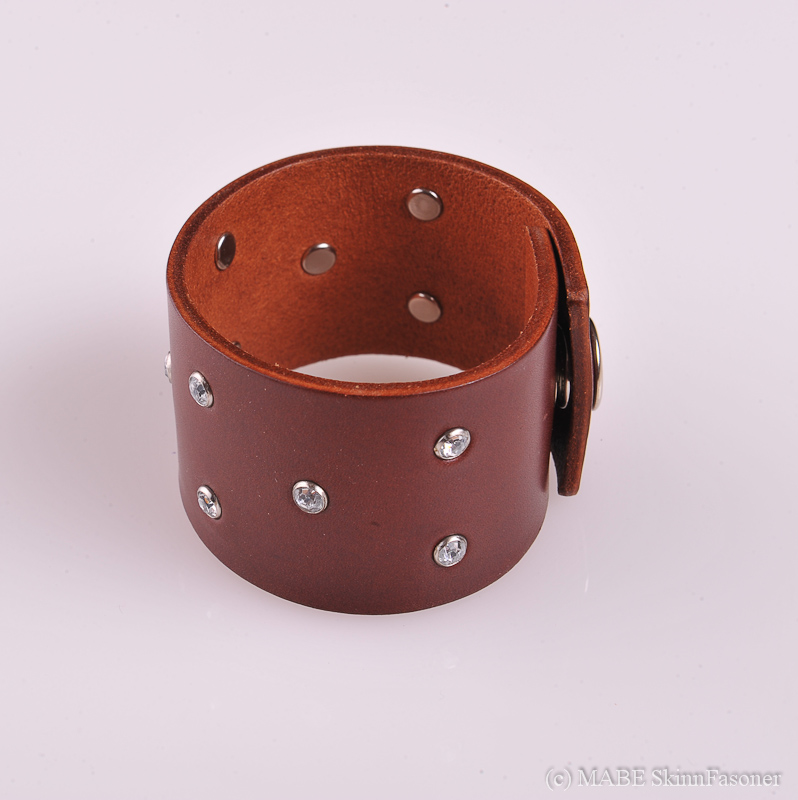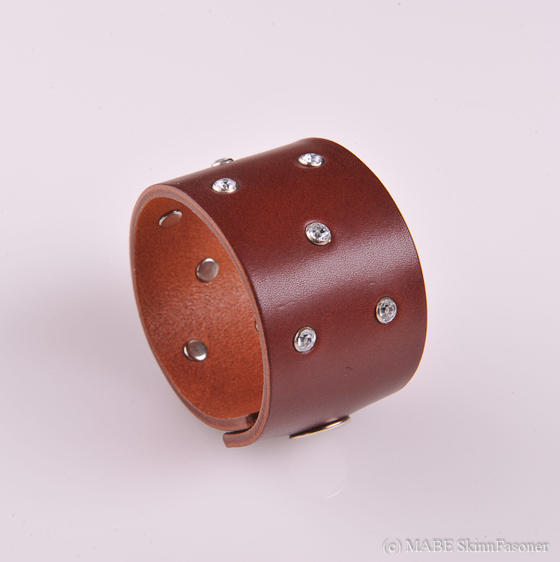 Armbanden är tillverkad i svensk oxhud. Tuffa, glamorösa och fräcka.