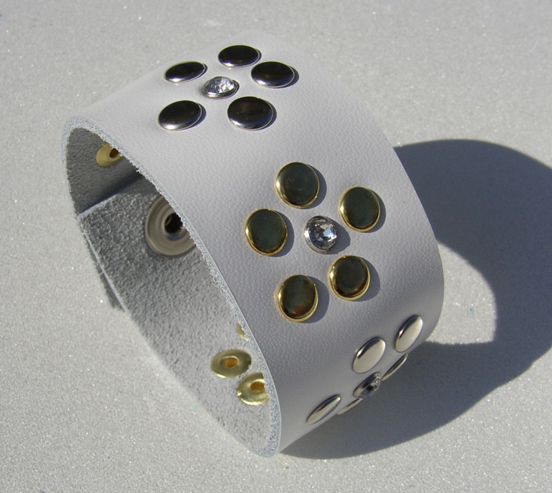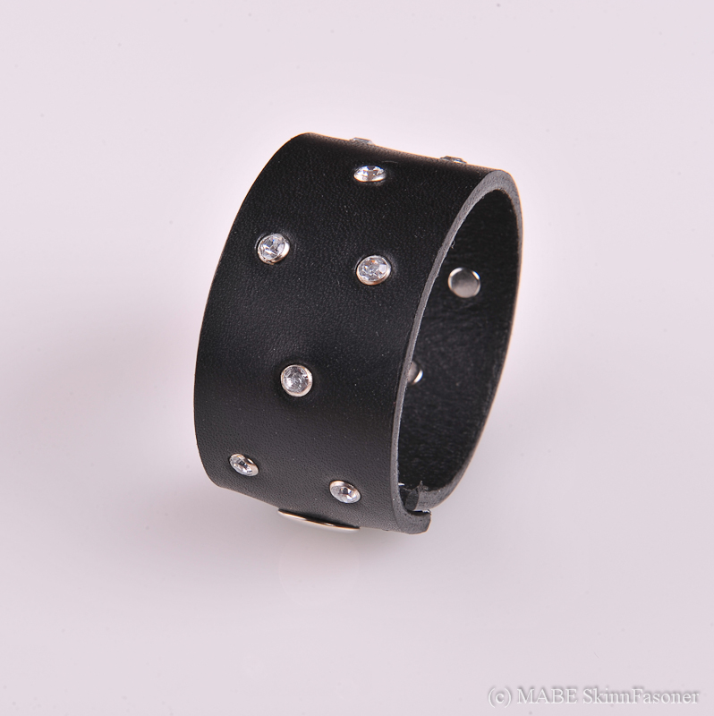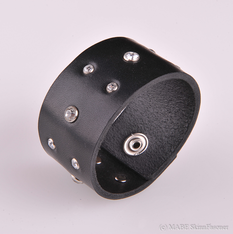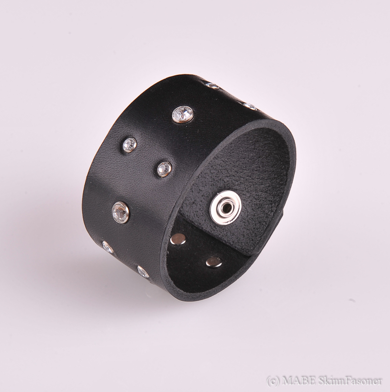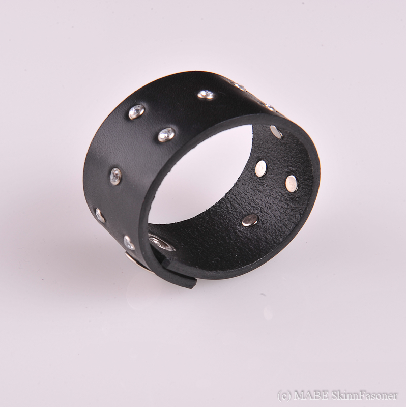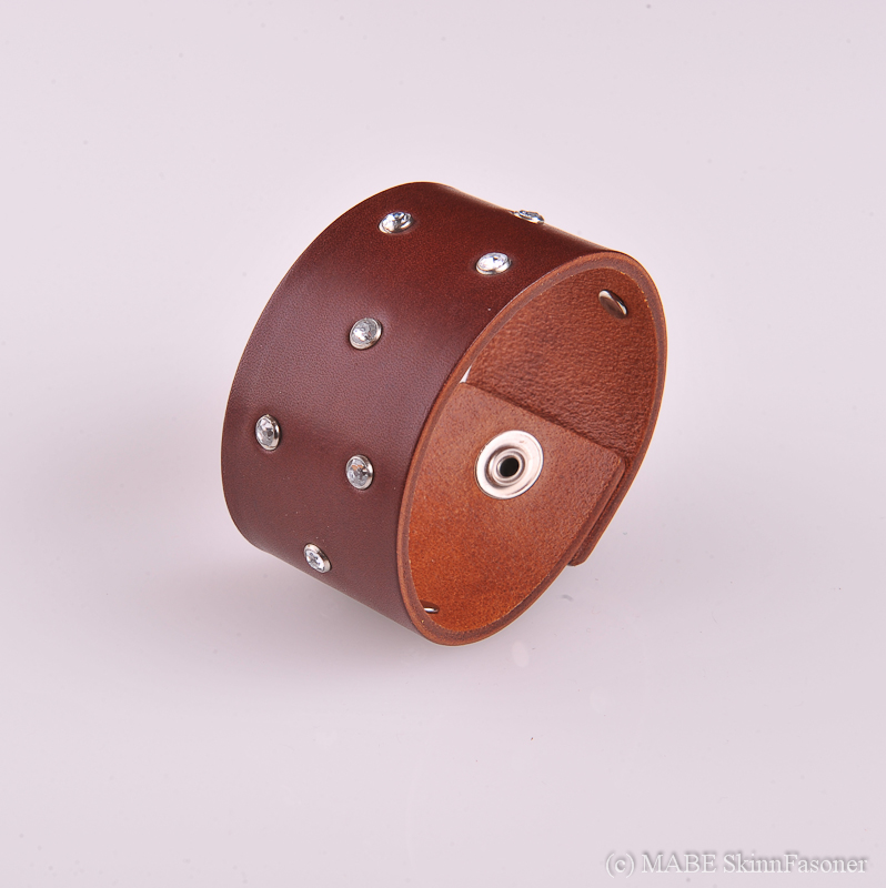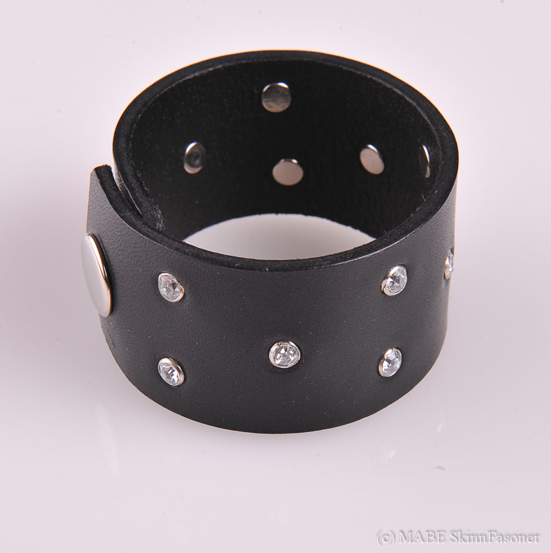 Armbanden är tillverkad i svensk oxhud. Tuffa, glamorösa och fräcka.
