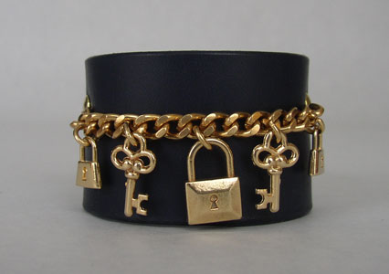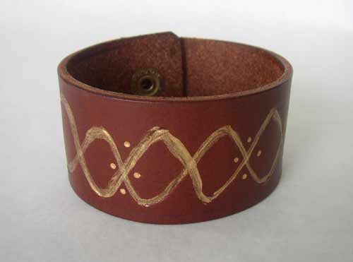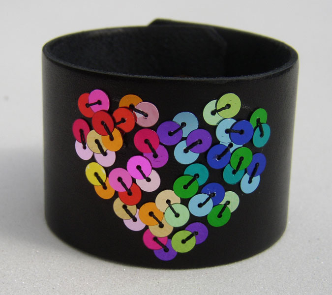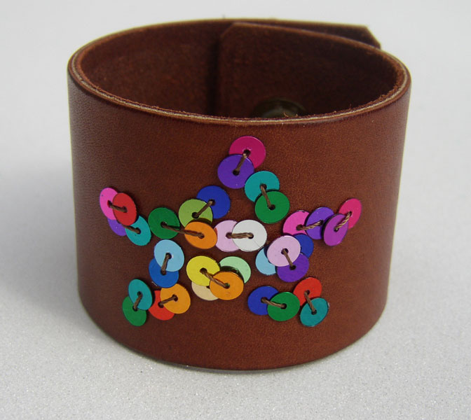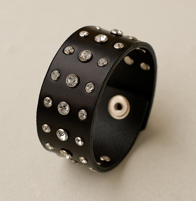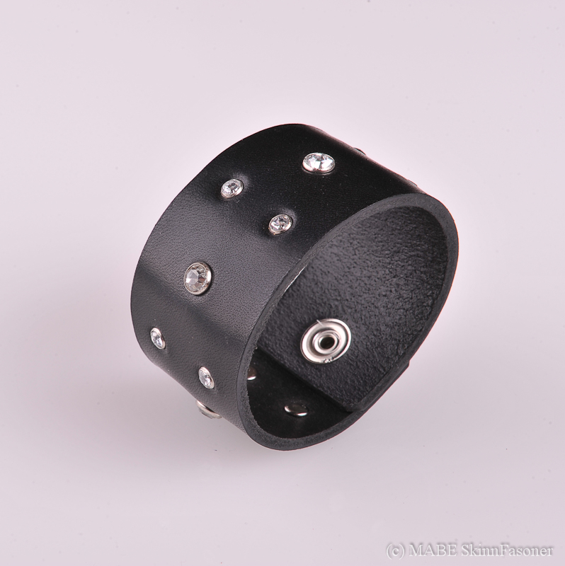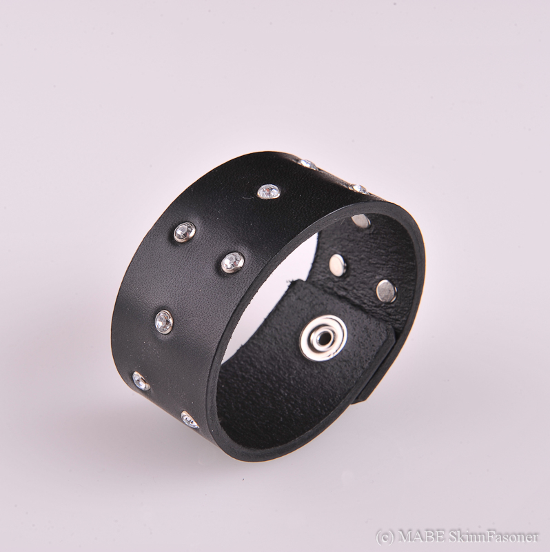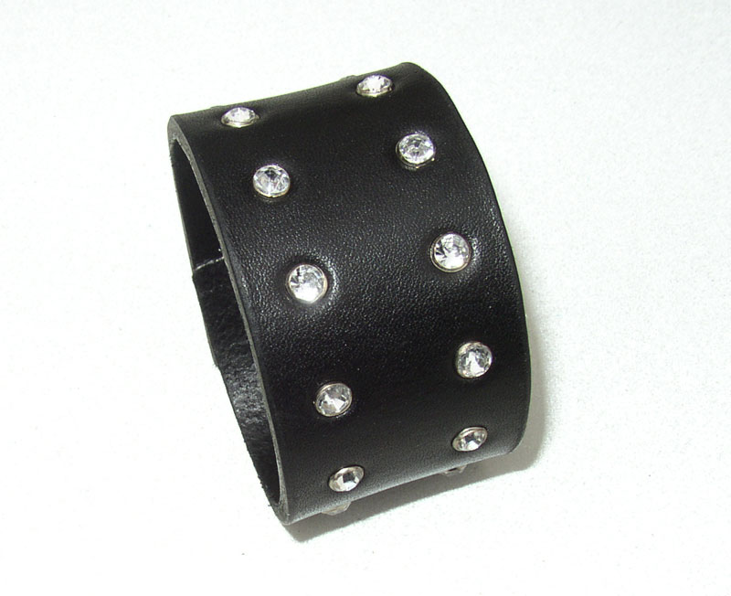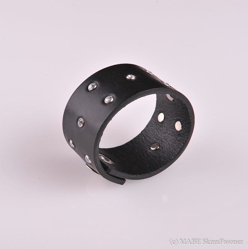 Armbanden är tillverkad i svensk oxhud. Tuffa, glamorösa och fräcka.