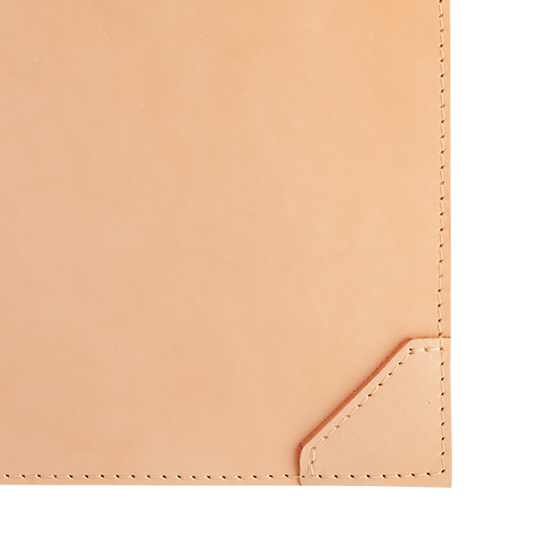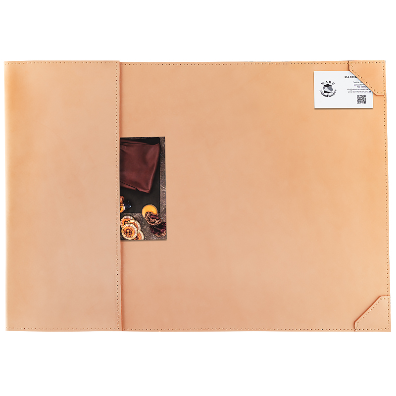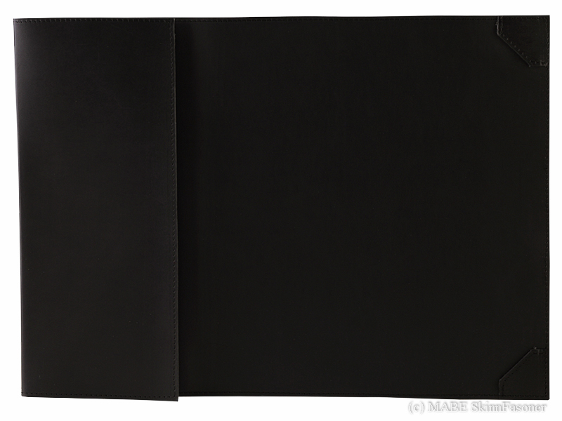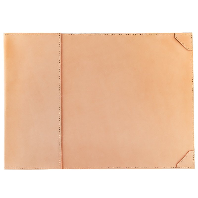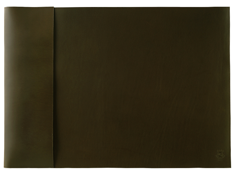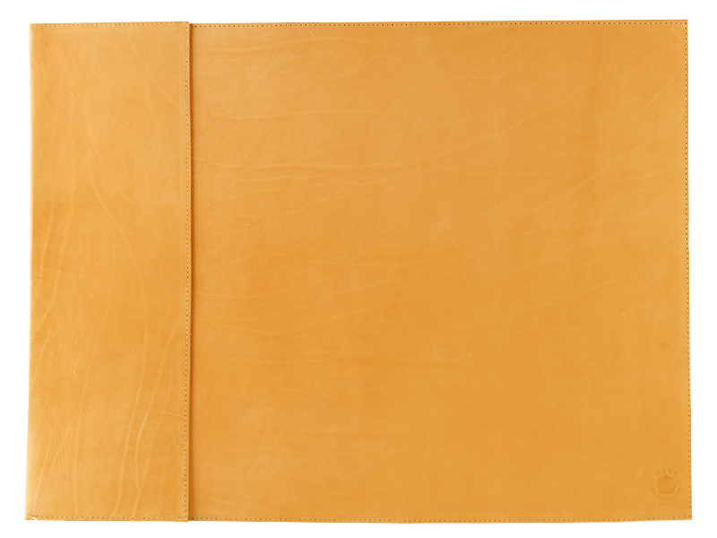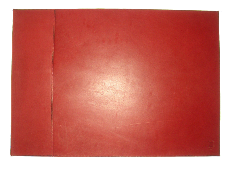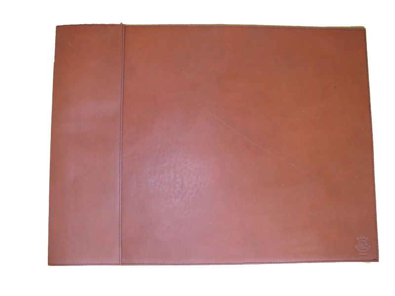 Skrivbordsunderläggen är tillverkade i kalvskinn.