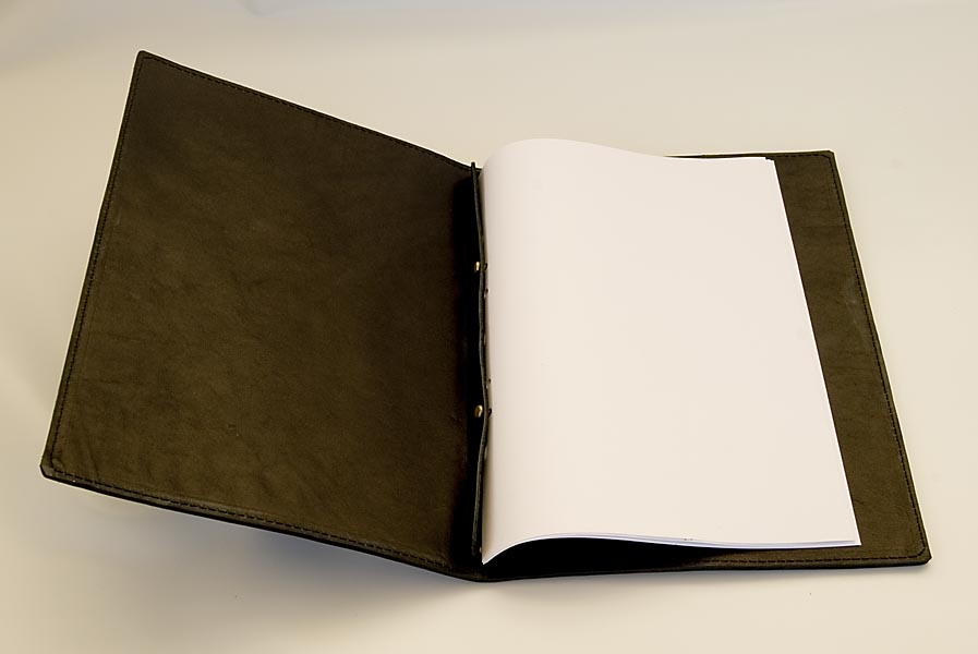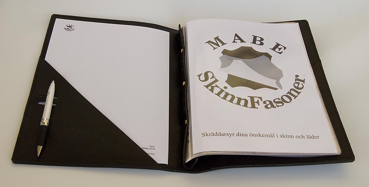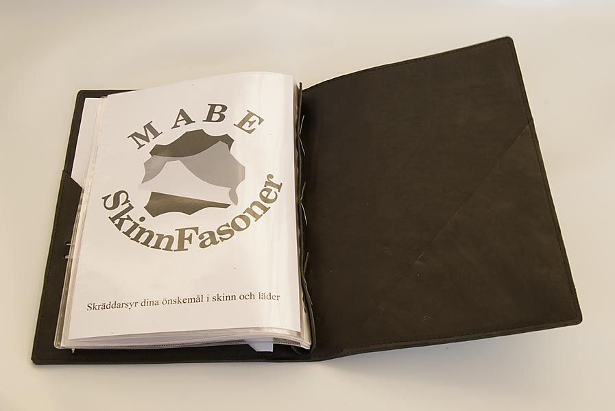 Presentations materiell i exklusivt kalvskinn. I våra menypärmar så