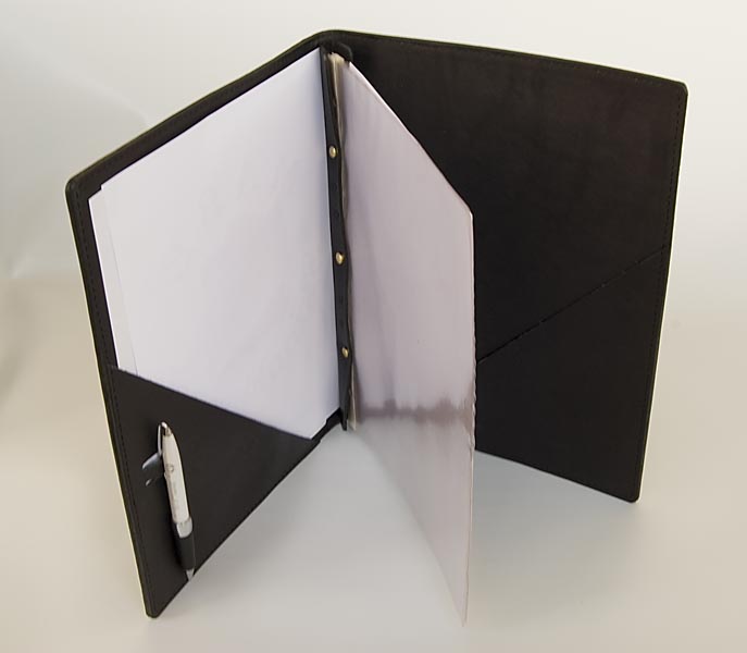 varumärke. Denna presentationspärm är inred med fickor på insidorna,