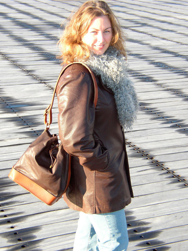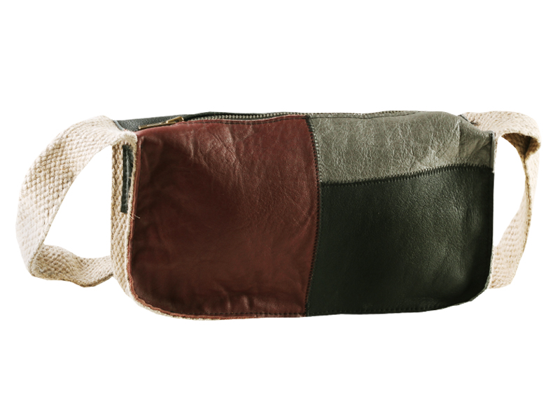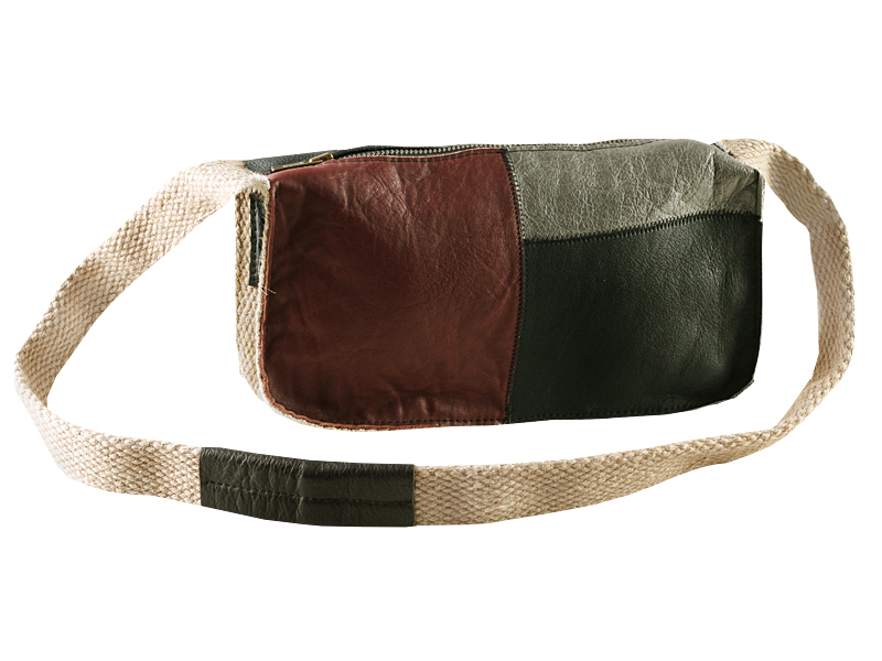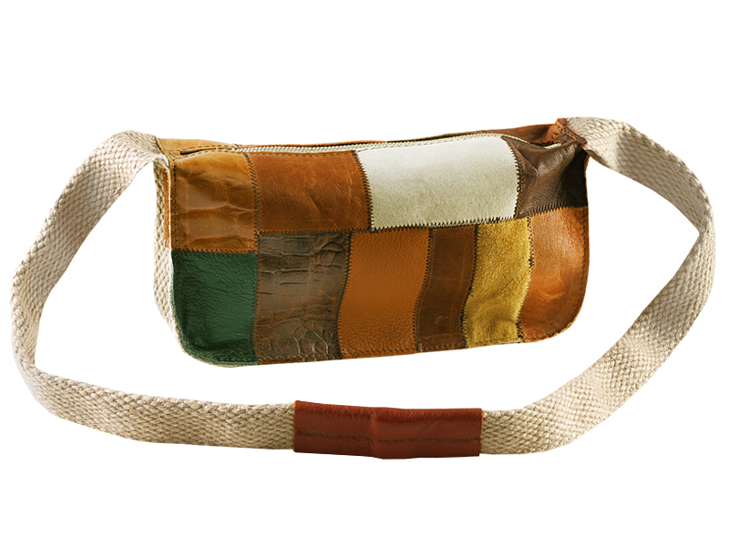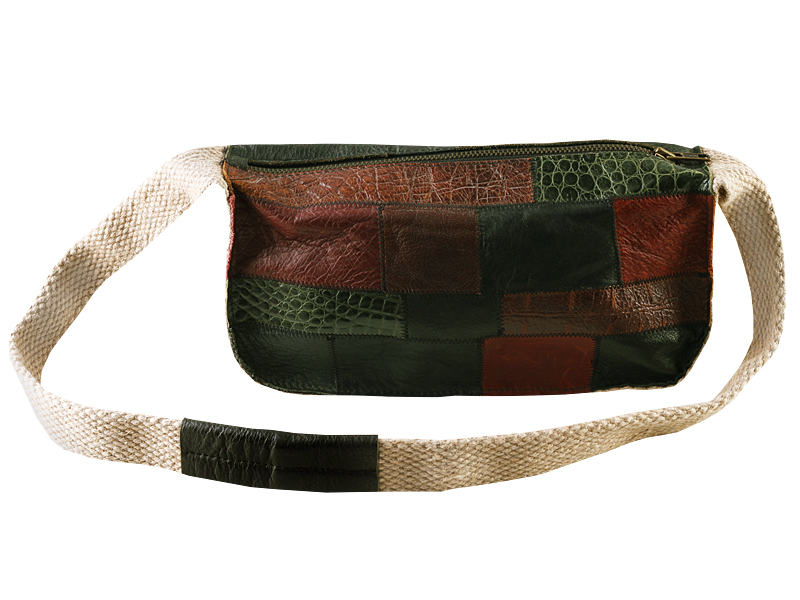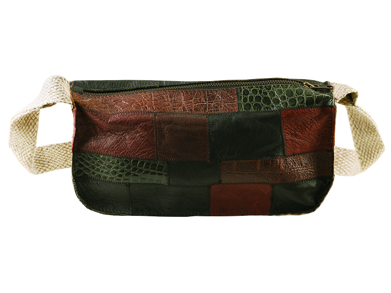 Tillverkad i skinn och sadeljord. Mycket snygg till linnekläder. Ett stort fack som försluts med dragkedja. Mått 26x12x6 cm.