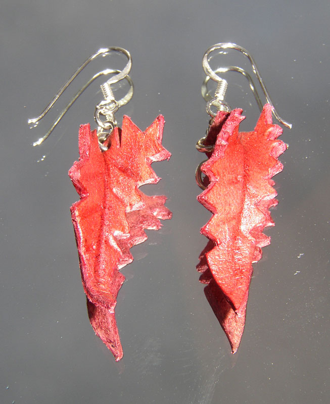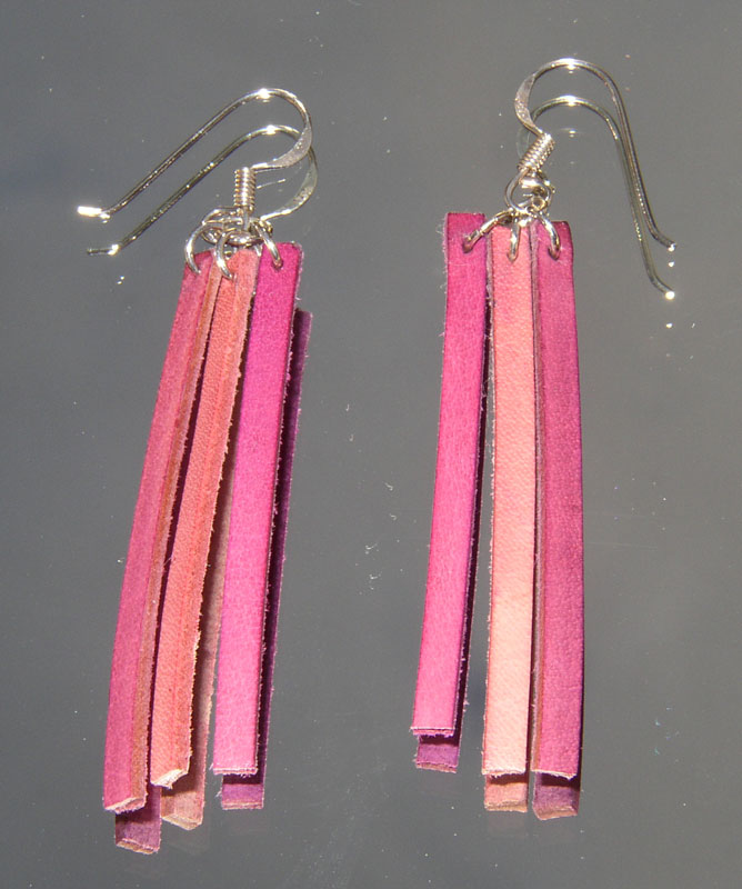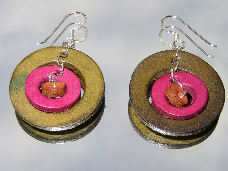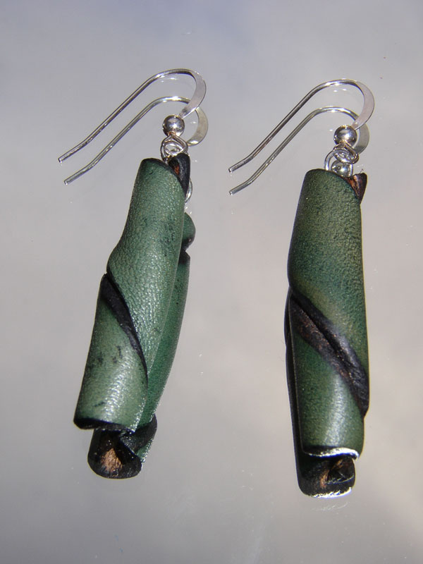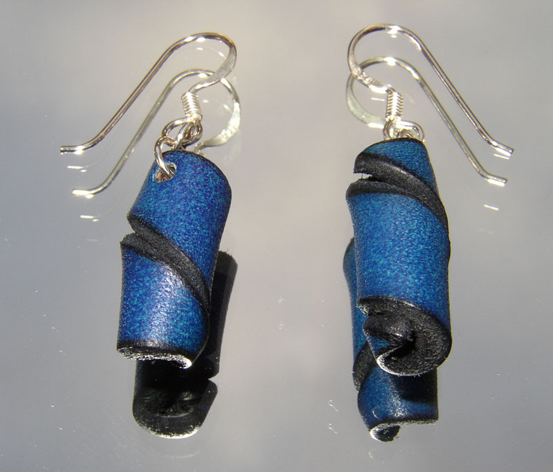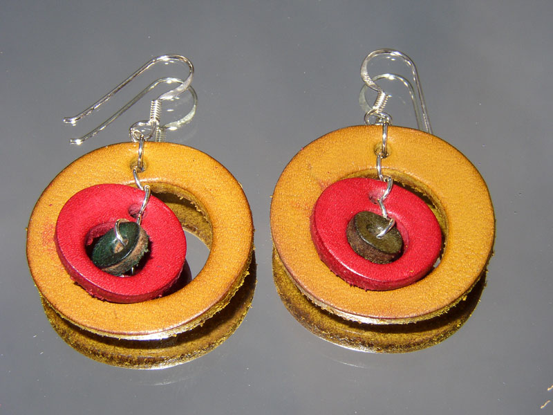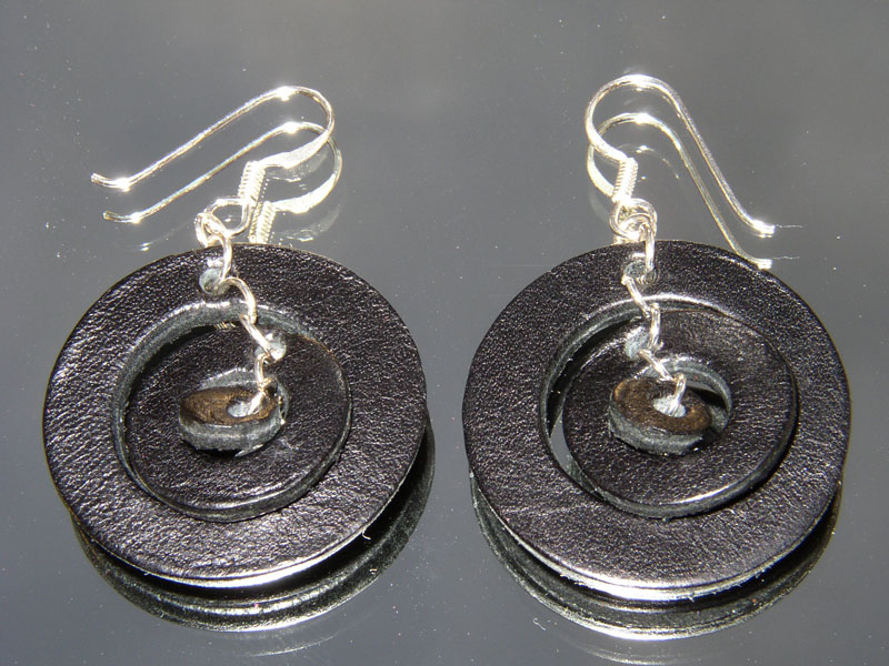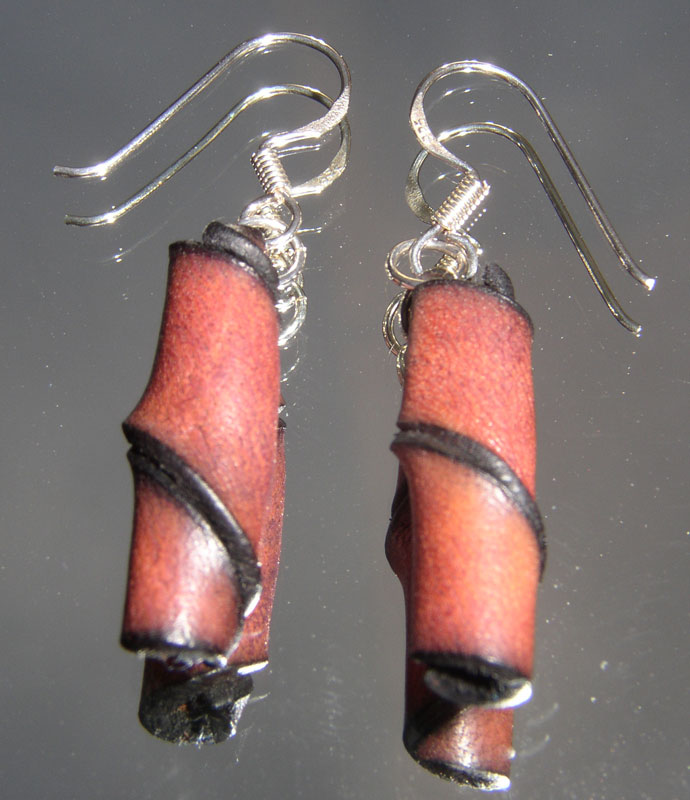 Örhängena är tillverkade i vegetabilgarvad oxhud. Det gör att de blir väldig lätta så de tynger inte ner öronsnibbarna utan