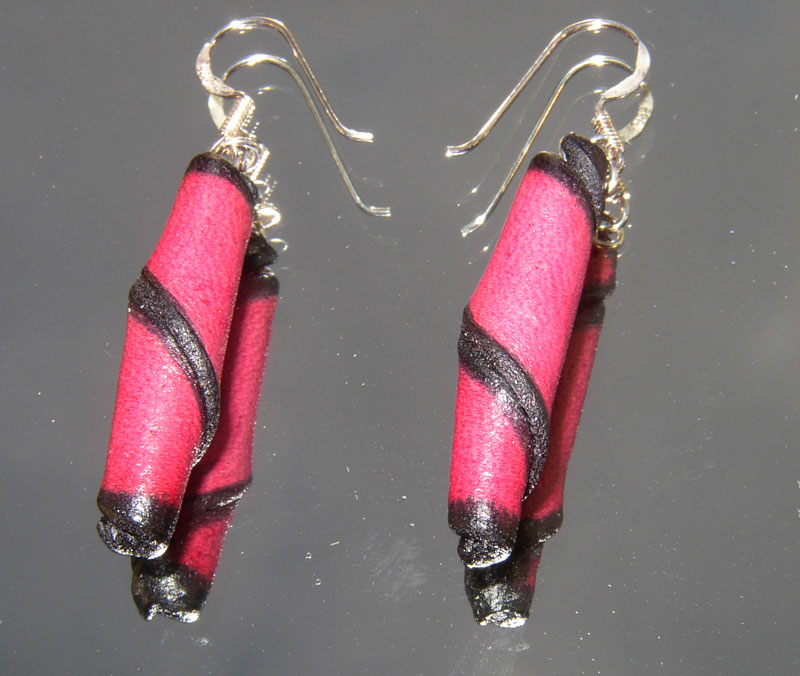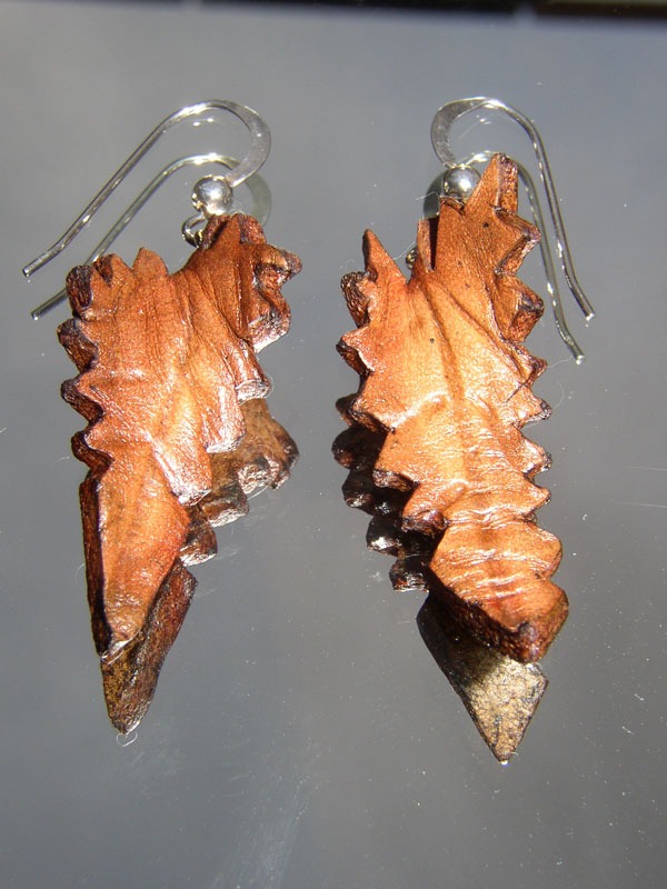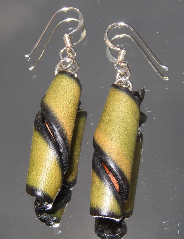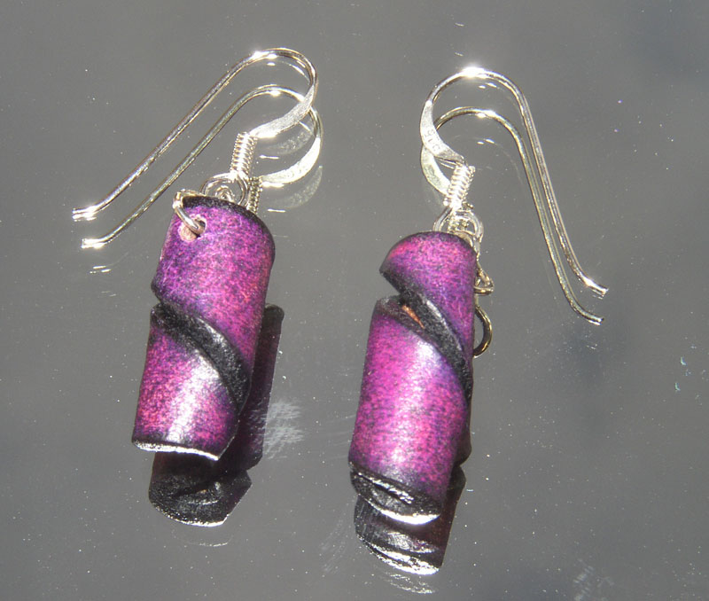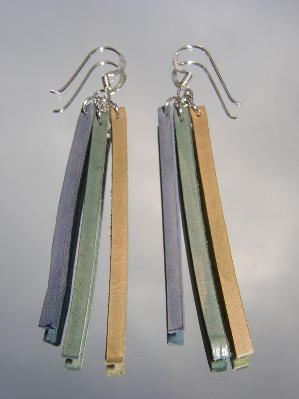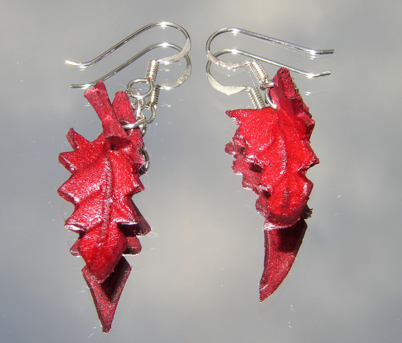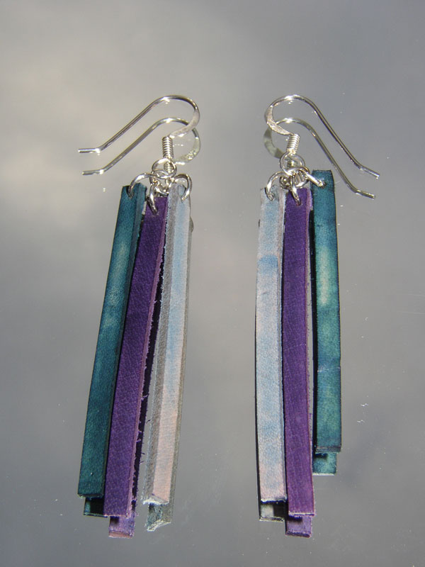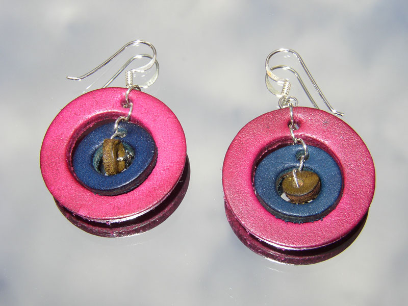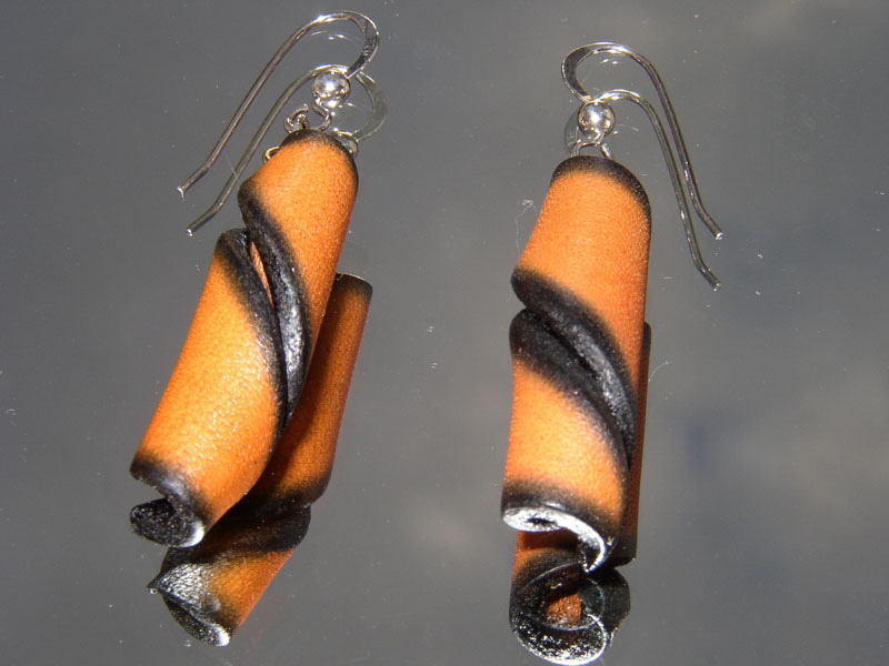 Örhängena är tillverkade i vegetabilgarvad oxhud. Det gör att de blir väldig lätta så de tynger inte ner öronsnibbarna utan
